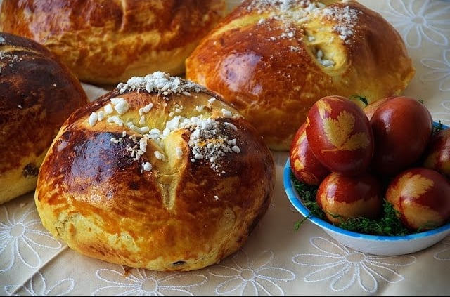 In Greece, Easter is a time of feasting and celebration. Tsoureki, a sweet braided bread, is a staple during this holiday. Made with flour, milk, butter, eggs, and flavored with orange zest and mahlepi (a type of spice made from the seeds of wild cherry trees), Tsoureki is often enjoyed with a sprinkle of powdered sugar.