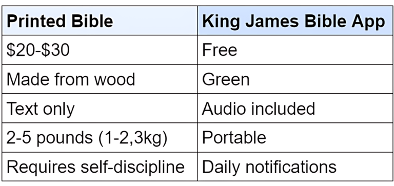 Consider the King James Bible app for daily verses and convenient notification. It makes your Bible learning easier and more captivating than with printed Bibles.