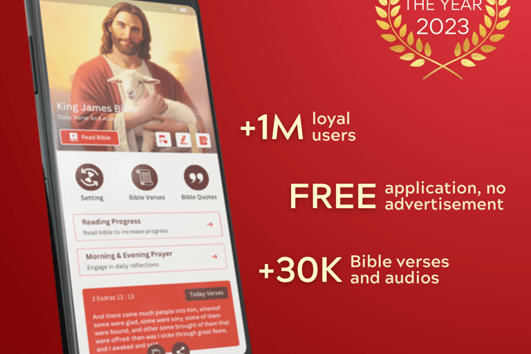 Devote just 10 minutes each day to a closer relationship with God. Over 30,000 verses with audios, powerful prayers,... are available on the King James Bible app. | Source: King James Bible App