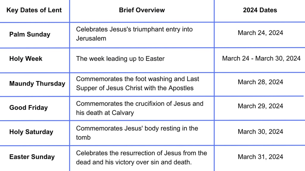 Key Dates of Lent for Holy Week 2024